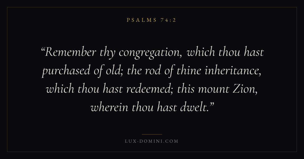 Remember thy congregation, which thou hast purchased of old; the rod of thine inheritance, which thou hast redeemed; this mount Zion, wherein thou hast dwelt.