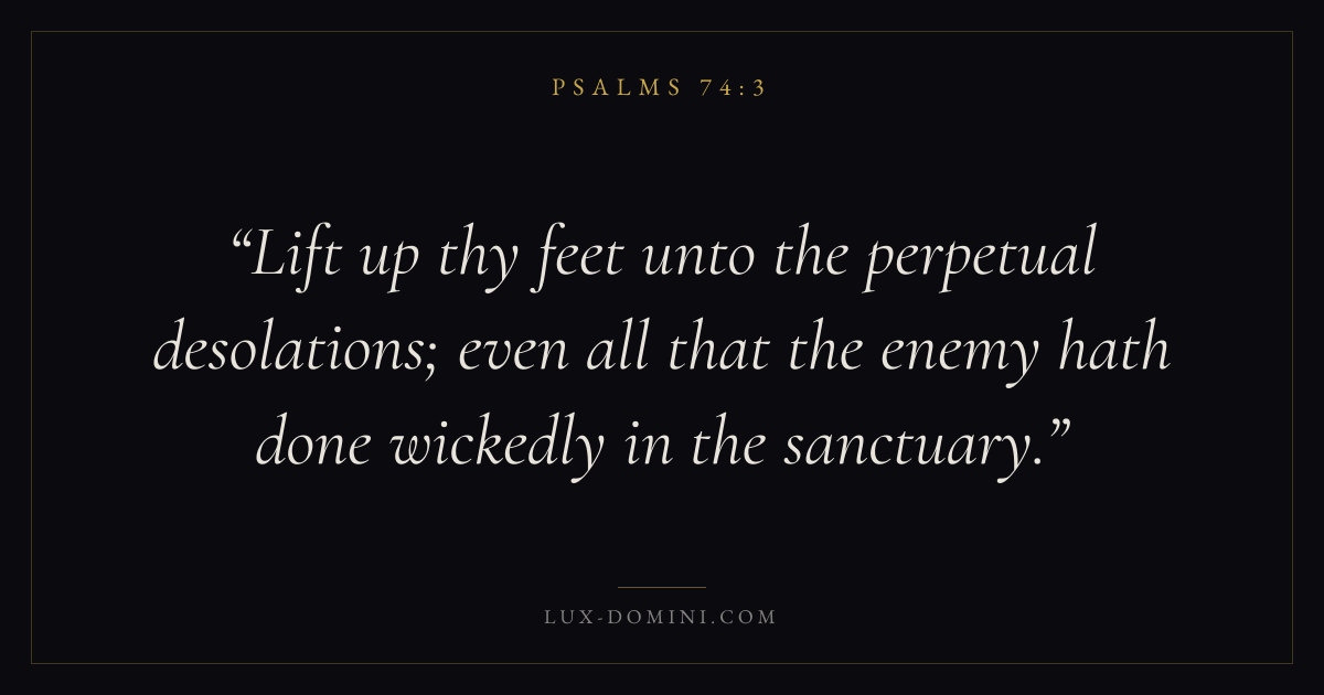 Lift up thy feet unto the perpetual desolations; even all that the enemy hath done wickedly in the sanctuary.
