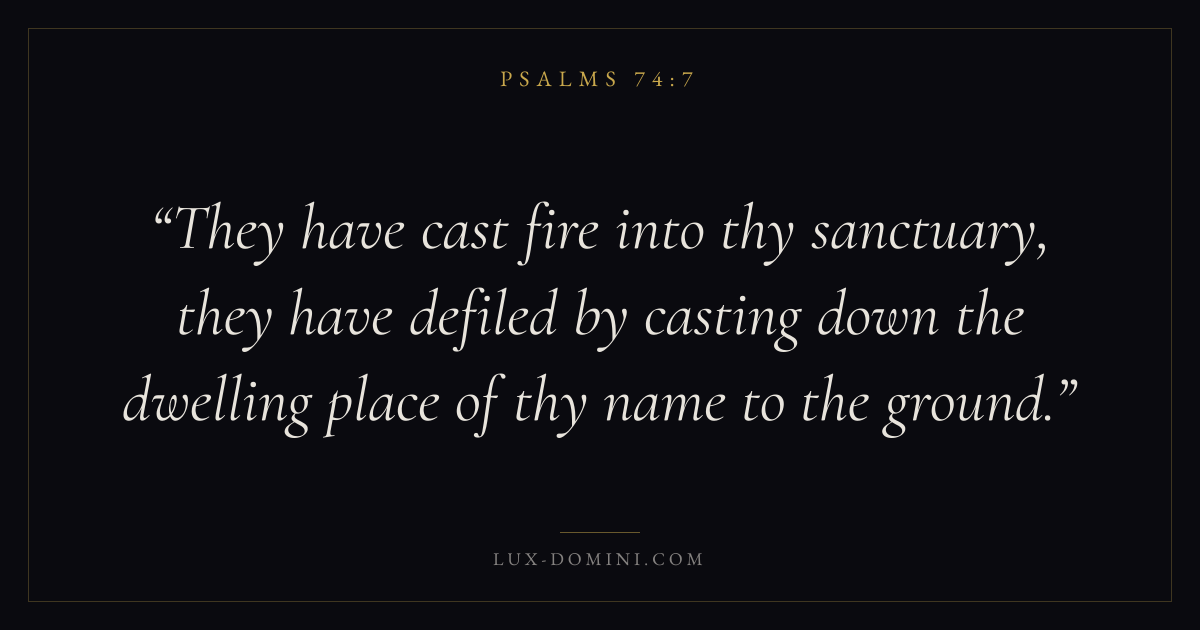 They have cast fire into thy sanctuary, they have defiled by casting down the dwelling place of thy name to the ground.