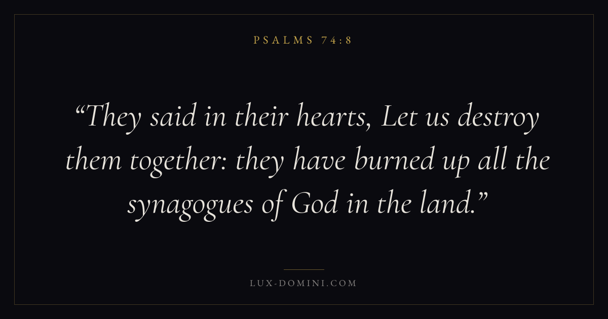 They said in their hearts, Let us destroy them together: they have burned up all the synagogues of God in the land.
