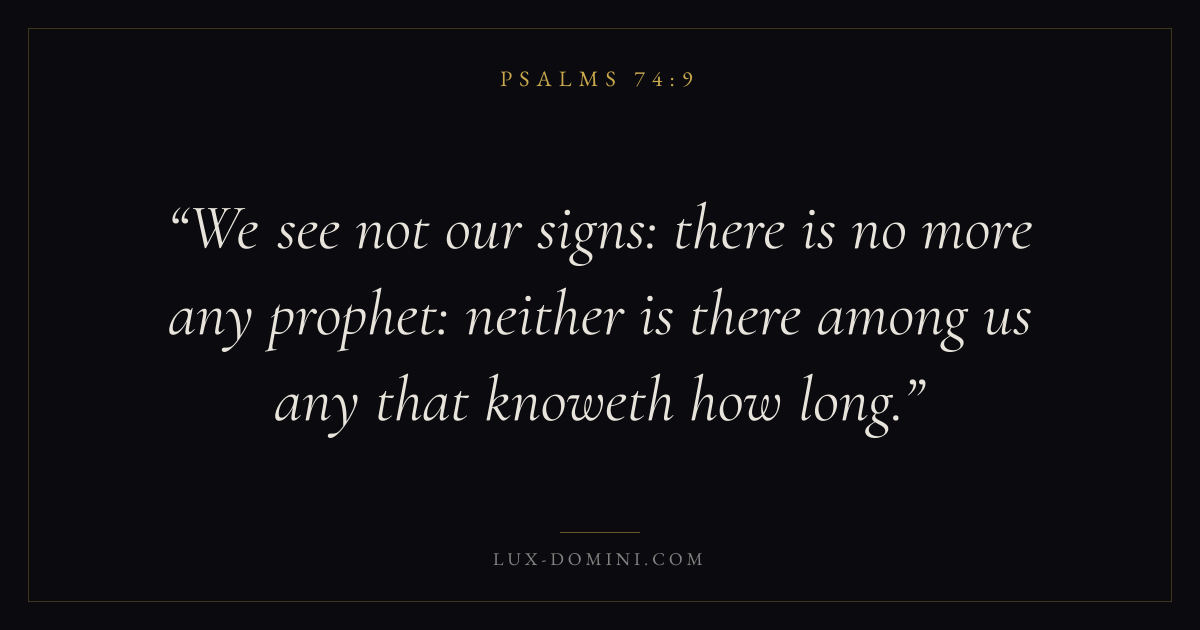 We see not our signs: there is no more any prophet: neither is there among us any that knoweth how long.