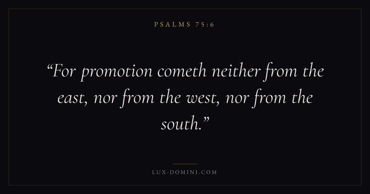 For promotion cometh neither from the east, nor from the west, nor from the south.