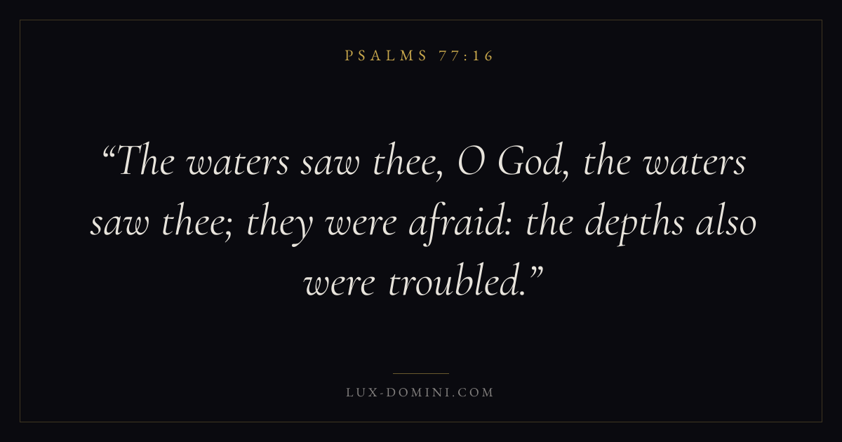 The waters saw thee, O God, the waters saw thee; they were afraid: the depths also were troubled.