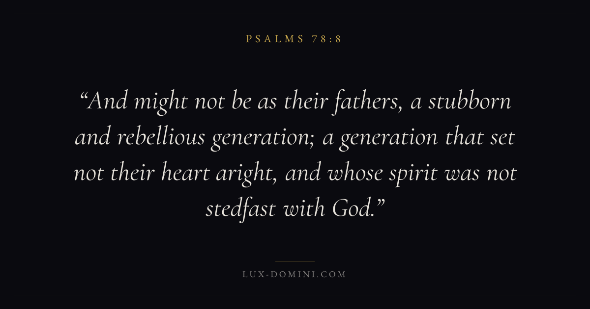 And might not be as their fathers, a stubborn and rebellious generation; a generation that set not their heart aright, and whose spirit was not stedfast with God.