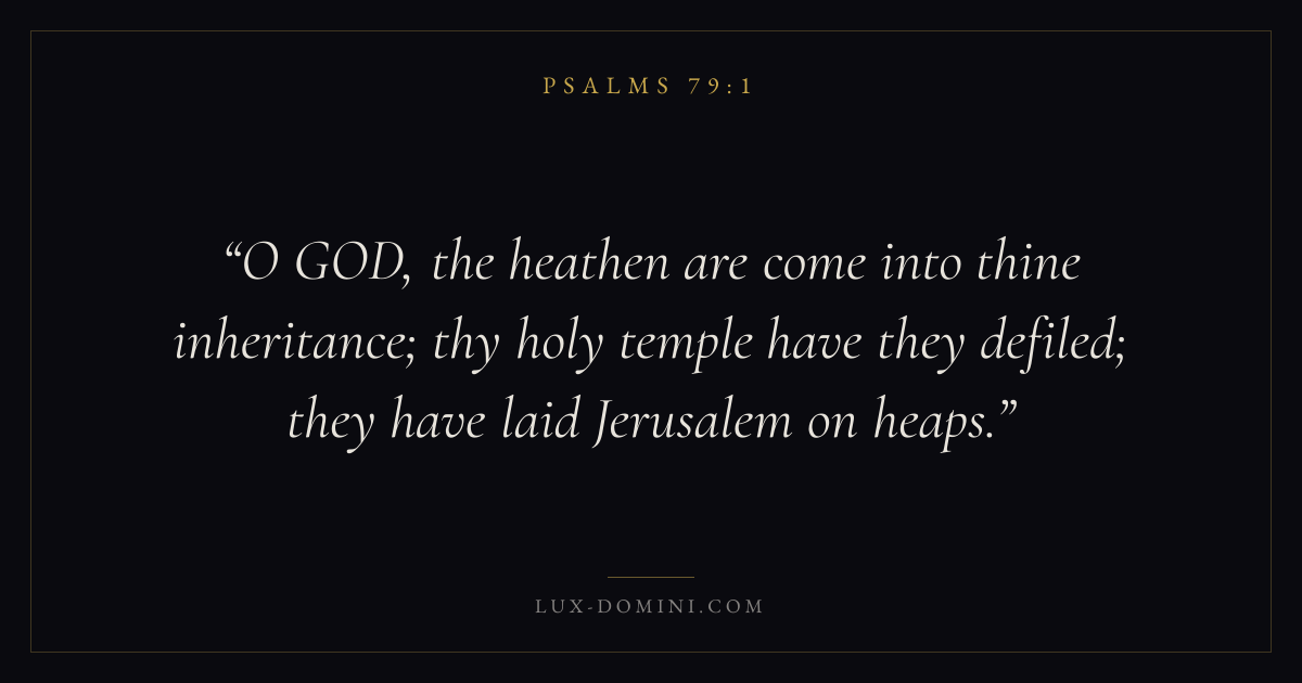 O GOD, the heathen are come into thine inheritance; thy holy temple have they defiled; they have laid Jerusalem on heaps.