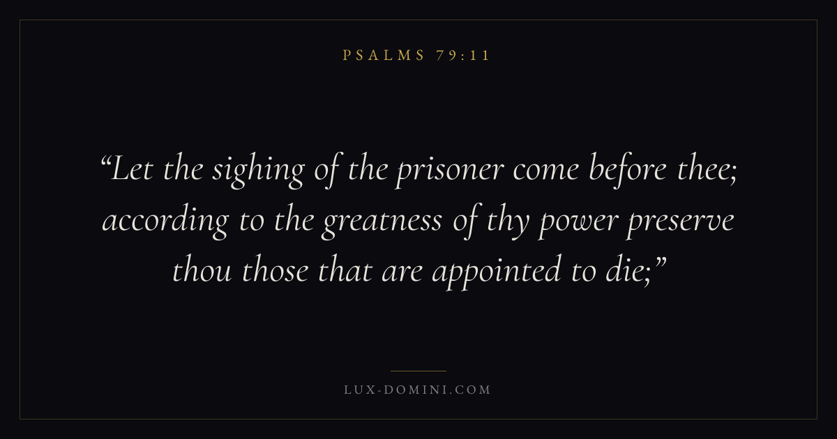 Let the sighing of the prisoner come before thee; according to the greatness of thy power preserve thou those that are appointed to die;