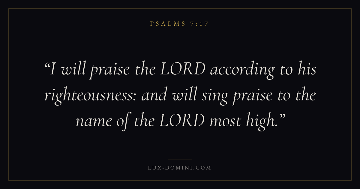 I will praise the LORD according to his righteousness: and will sing praise to the name of the LORD most high.