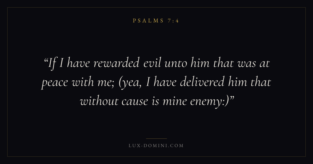 If I have rewarded evil unto him that was at peace with me; (yea, I have delivered him that without cause is mine enemy:)