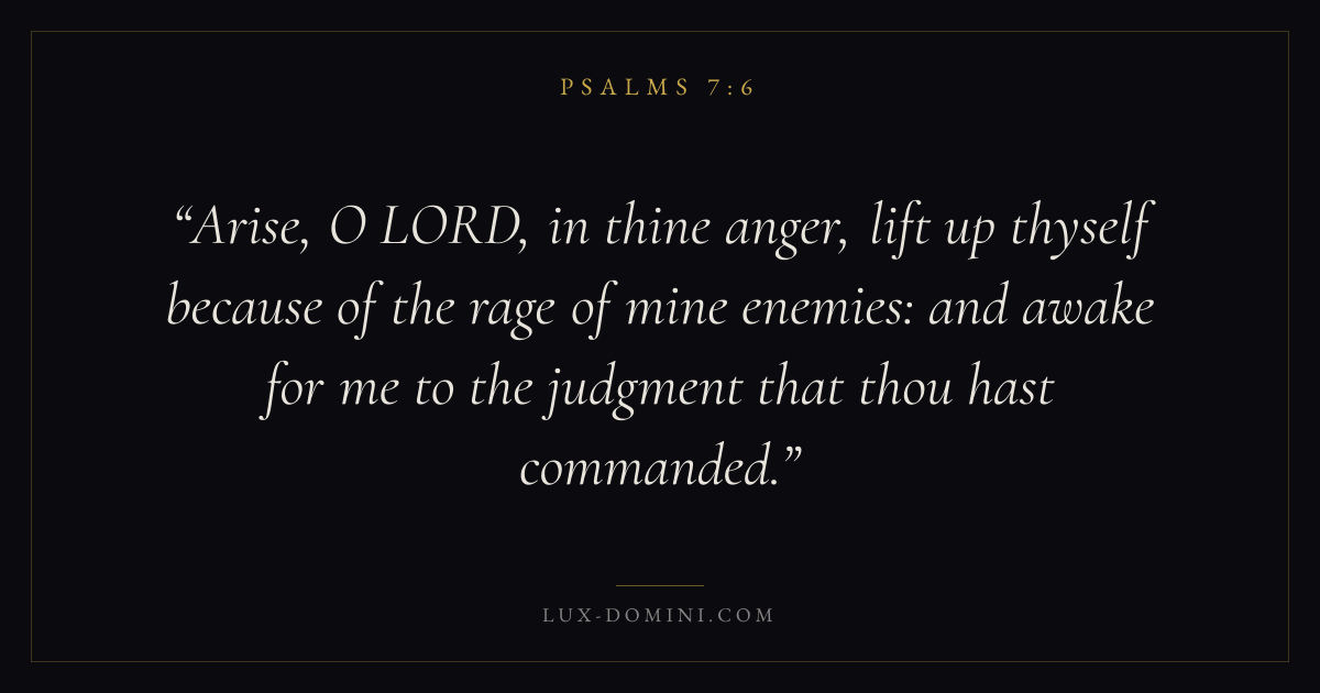 Arise, O LORD, in thine anger, lift up thyself because of the rage of mine enemies: and awake for me to the judgment that thou hast commanded.