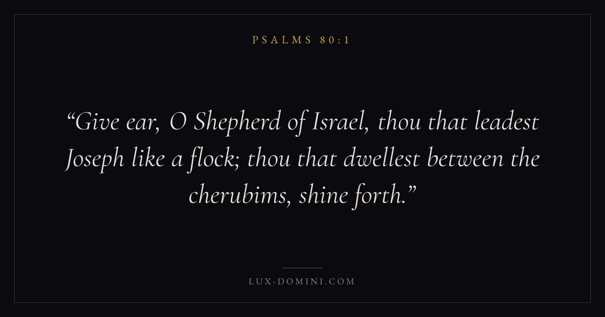Give ear, O Shepherd of Israel, thou that leadest Joseph like a flock; thou that dwellest between the cherubims, shine forth.