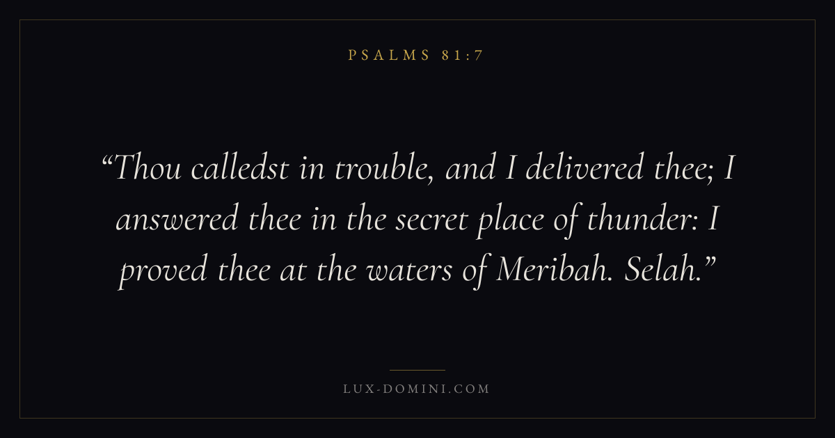 Thou calledst in trouble, and I delivered thee; I answered thee in the secret place of thunder: I proved thee at the waters of Meribah. Selah.