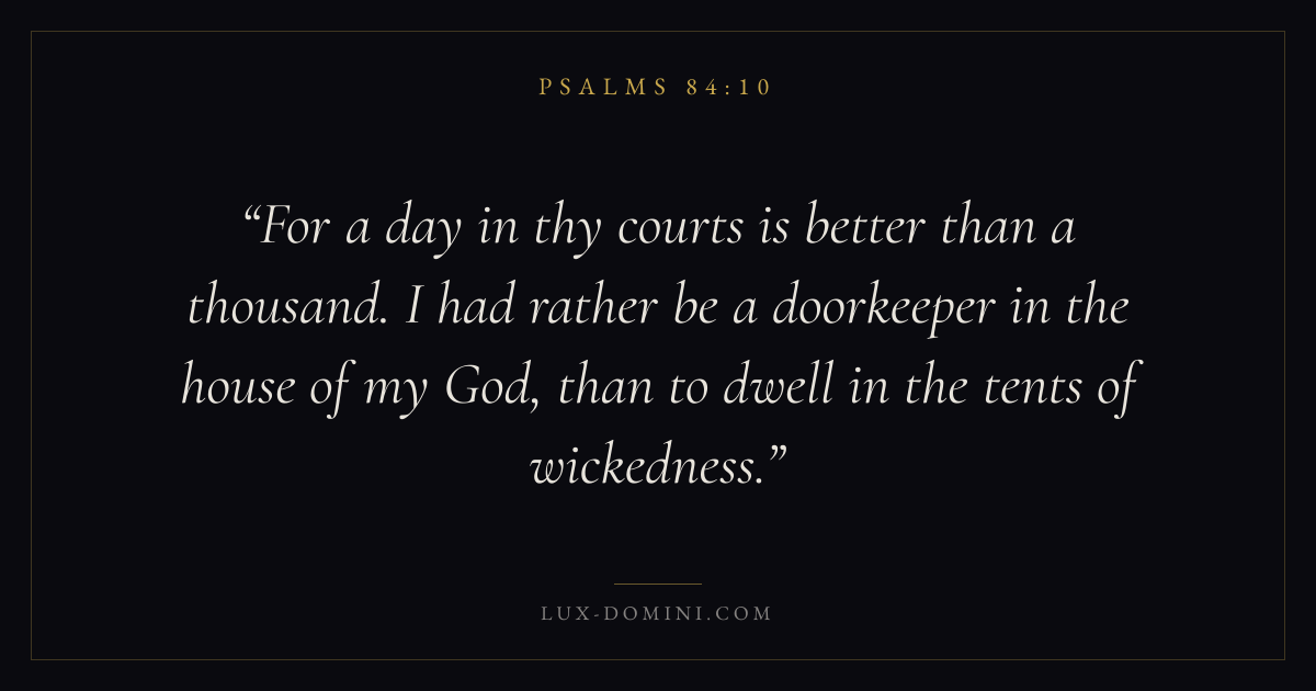 For a day in thy courts is better than a thousand. I had rather be a doorkeeper in the house of my God, than to dwell in the tents of wickedness.
