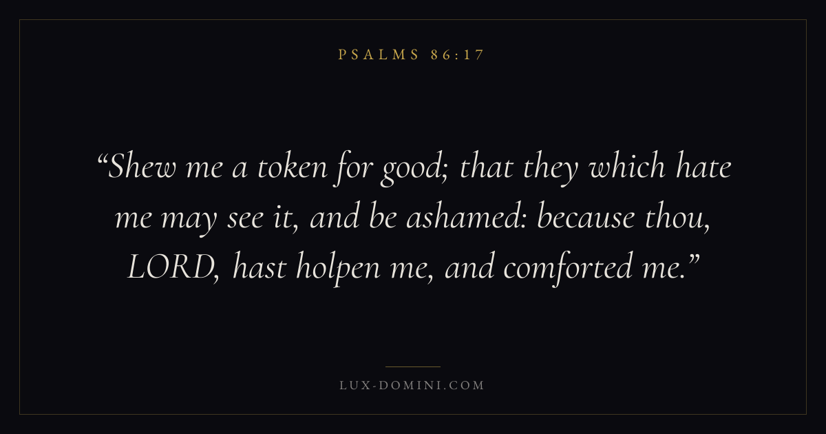 Shew me a token for good; that they which hate me may see it, and be ashamed: because thou, LORD, hast holpen me, and comforted me.