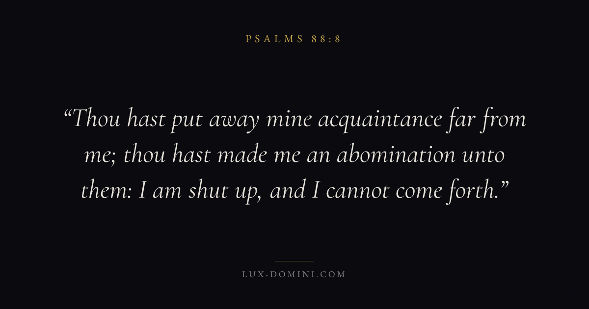 Thou hast put away mine acquaintance far from me; thou hast made me an abomination unto them: I am shut up, and I cannot come forth.