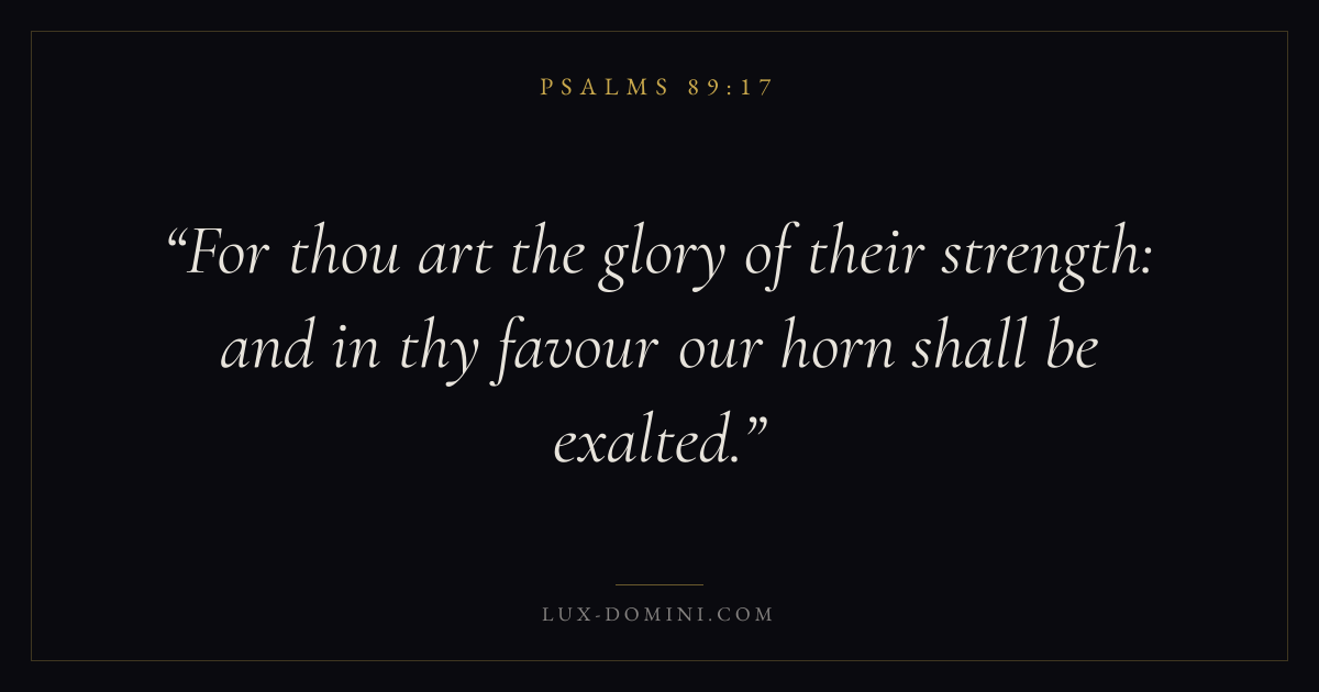 For thou art the glory of their strength: and in thy favour our horn shall be exalted.