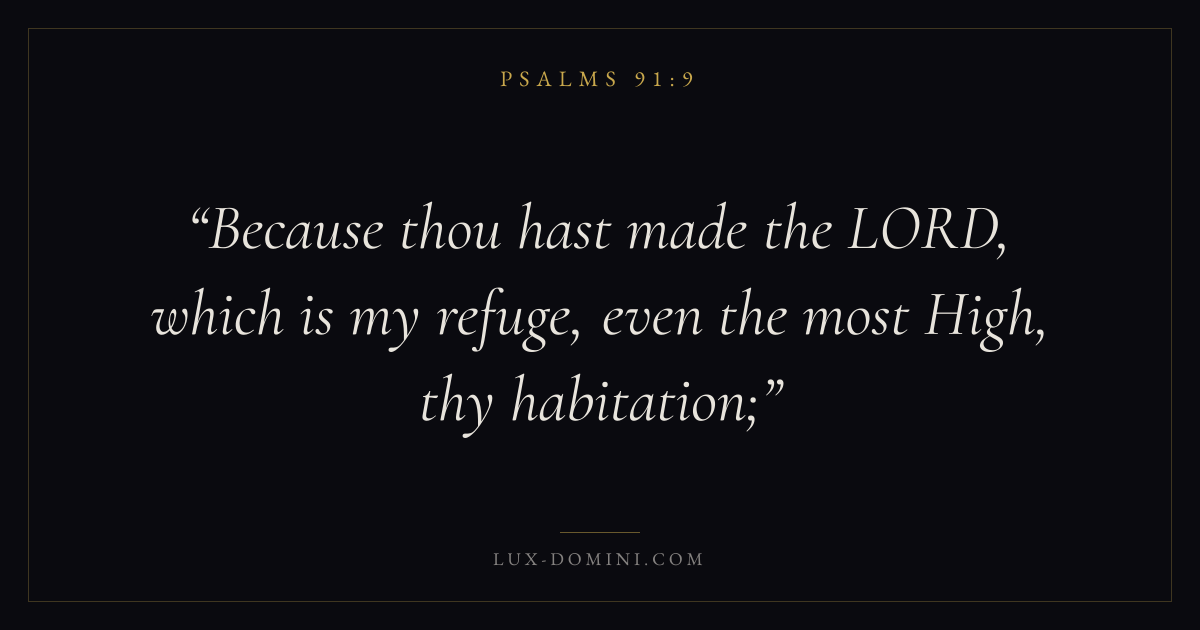 Because thou hast made the LORD, which is my refuge, even the most High, thy habitation; Because thou hast made the Lord, which is my refuge - literally, "For thou, O Jehovah, (art) my refuge." The Chaldee Paraphrase regards this as the language of Solomon, who, according to that version, is one of the speakers in the psalm: "Solomon answered and said, 'Since thou, O Lord, art my refuge,'" etc. Tholuck regards this as the response of the choir. But this is unnecessary. The idea is, that the psalmist "himself" had made Yahweh his refuge, or his defense.
