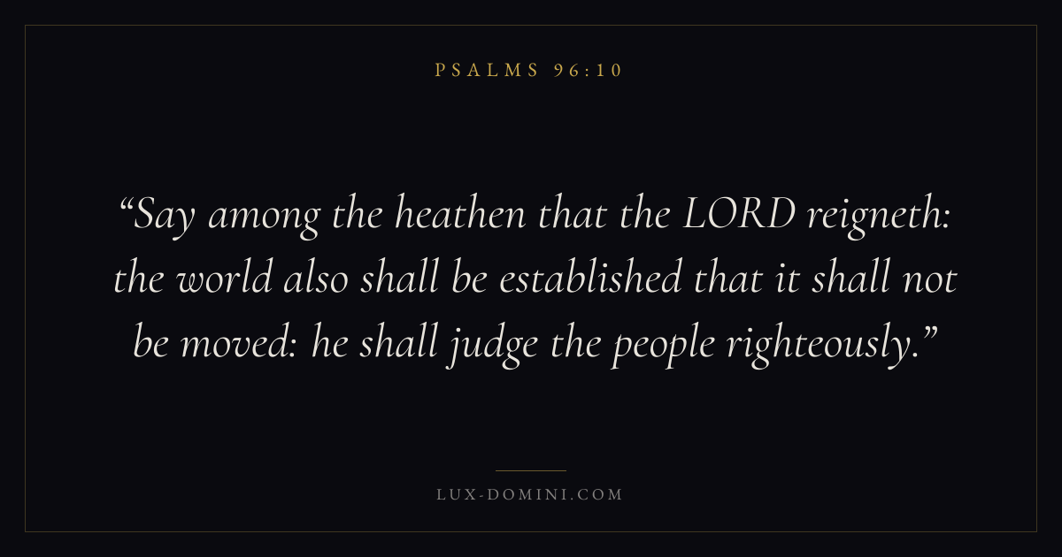 Say among the heathen that the LORD reigneth: the world also shall be established that it shall not be moved: he shall judge the people righteously.