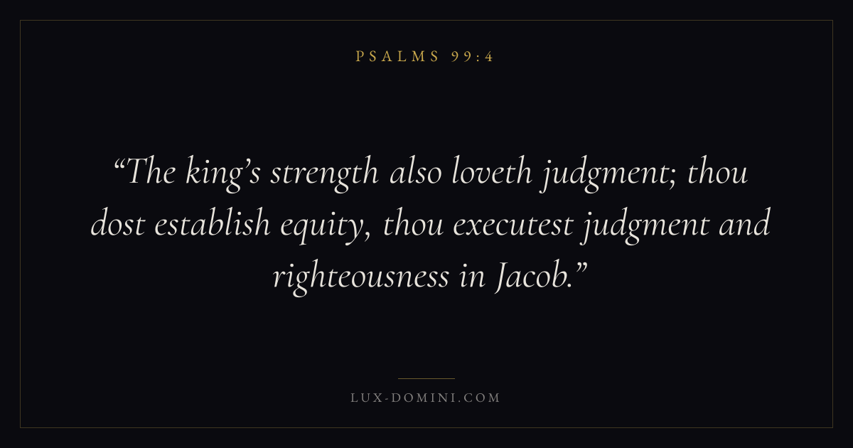 The king’s strength also loveth judgment; thou dost establish equity, thou executest judgment and righteousness in Jacob.