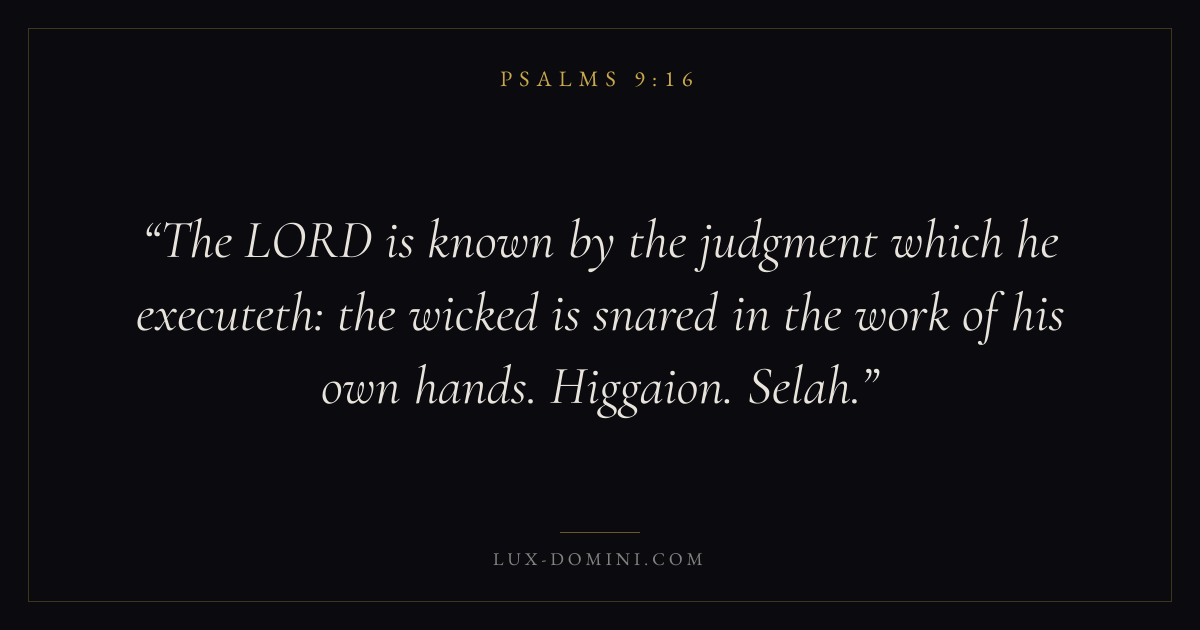 The LORD is known by the judgment which he executeth: the wicked is snared in the work of his own hands. Higgaion. Selah.