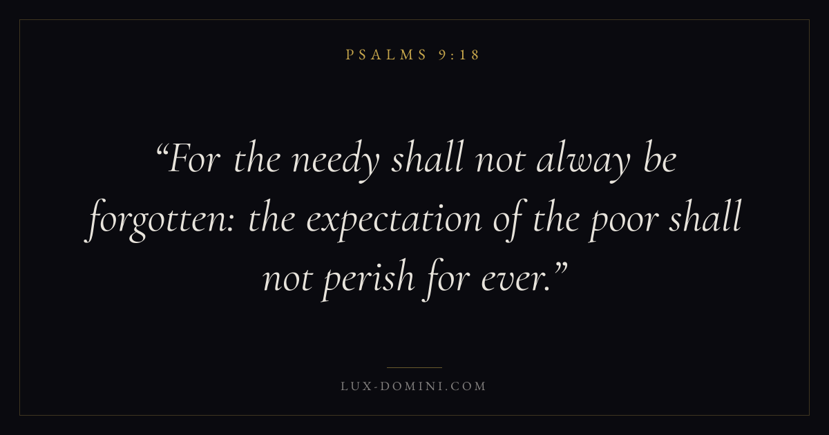 For the needy shall not alway be forgotten: the expectation of the poor shall not perish for ever.
