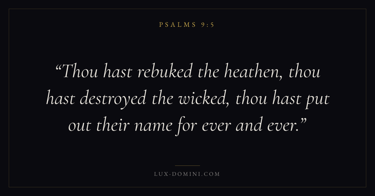 Thou hast rebuked the heathen, thou hast destroyed the wicked, thou hast put out their name for ever and ever.