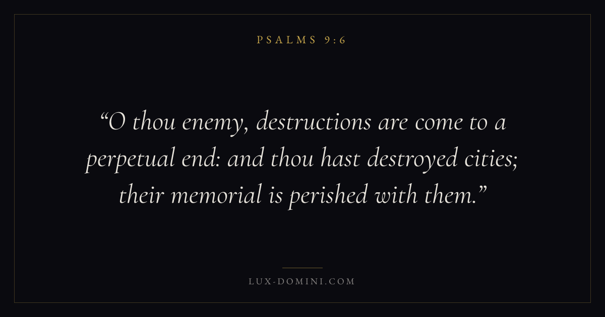 O thou enemy, destructions are come to a perpetual end: and thou hast destroyed cities; their memorial is perished with them.