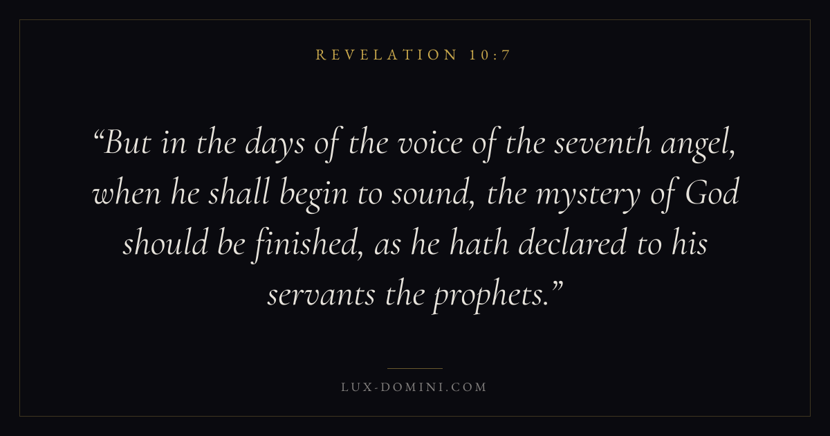But in the days of the voice of the seventh angel, when he shall begin to sound, the mystery of God should be finished, as he hath declared to his servants the prophets.