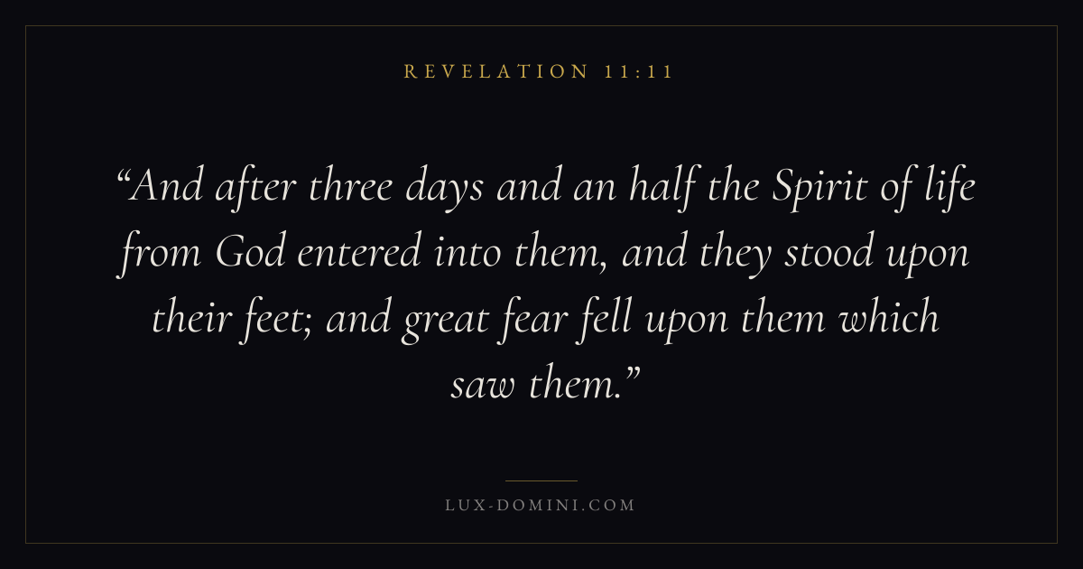 And after three days and an half the Spirit of life from God entered into them, and they stood upon their feet; and great fear fell upon them which saw them.