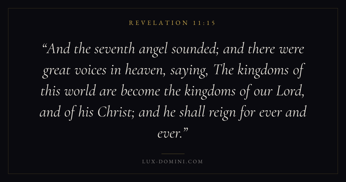 And the seventh angel sounded; and there were great voices in heaven, saying, The kingdoms of this world are become the kingdoms of our Lord, and of his Christ; and he shall reign for ever and ever.