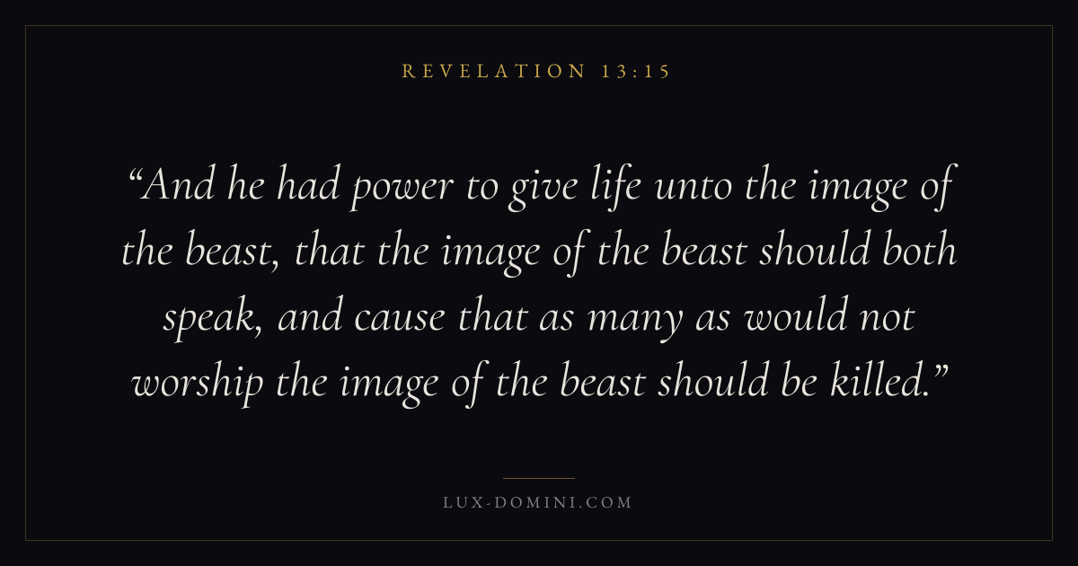 And he had power to give life unto the image of the beast, that the image of the beast should both speak, and cause that as many as would not worship the image of the beast should be killed.