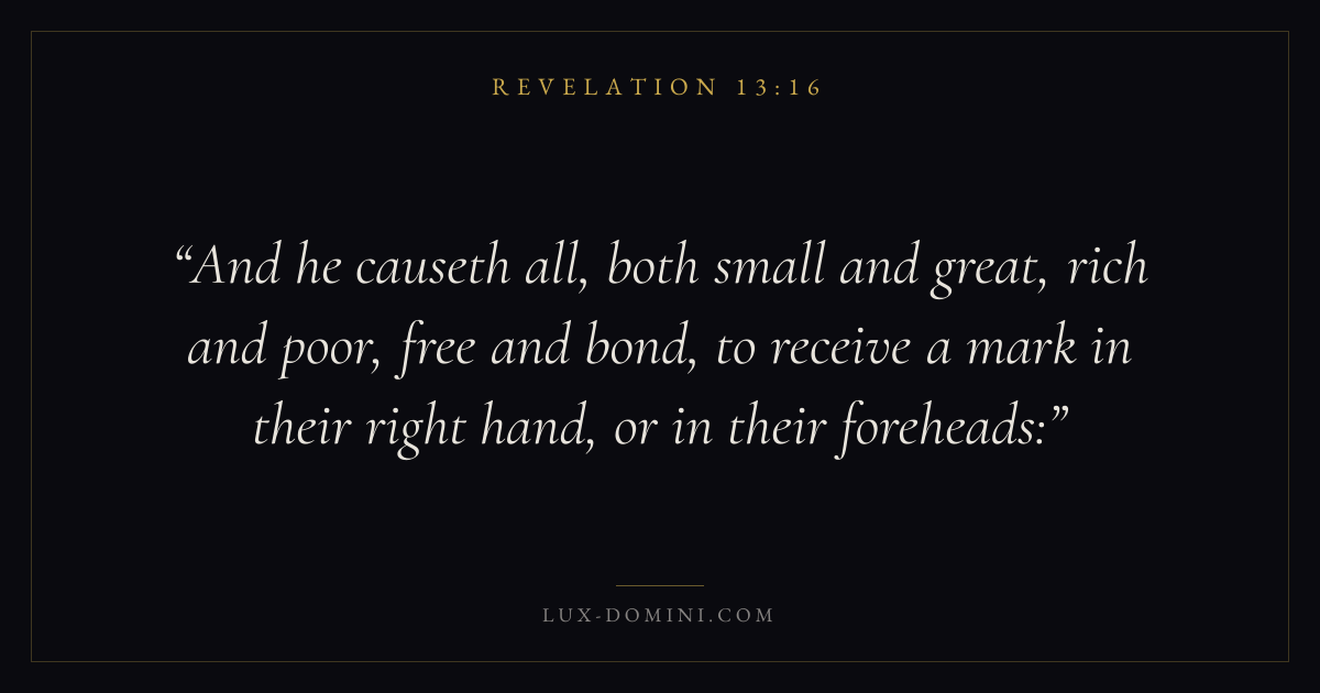 And he causeth all, both small and great, rich and poor, free and bond, to receive a mark in their right hand, or in their foreheads: