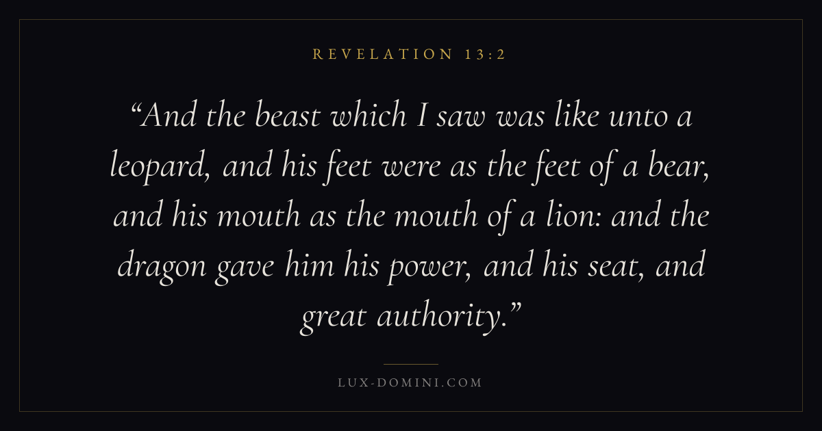 And the beast which I saw was like unto a leopard, and his feet were as the feet of a bear, and his mouth as the mouth of a lion: and the dragon gave him his power, and his seat, and great authority.