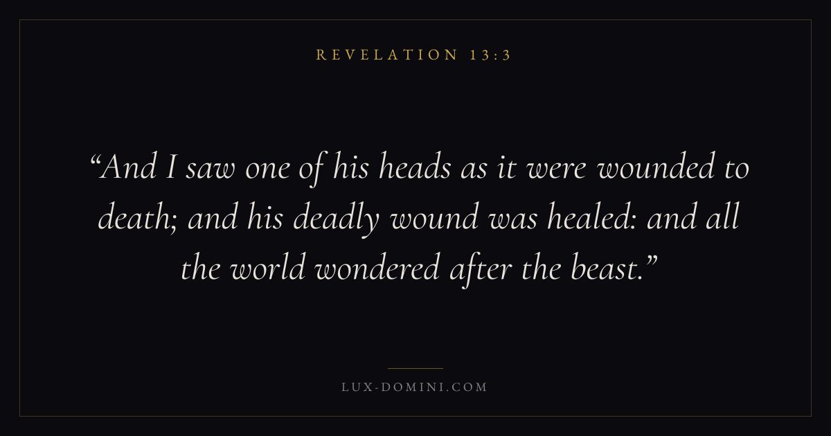 And I saw one of his heads as it were wounded to death; and his deadly wound was healed: and all the world wondered after the beast.