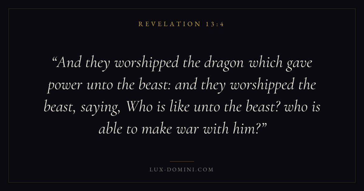 And they worshipped the dragon which gave power unto the beast: and they worshipped the beast, saying, Who is like unto the beast? who is able to make war with him?