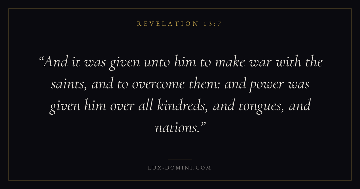 And it was given unto him to make war with the saints, and to overcome them: and power was given him over all kindreds, and tongues, and nations.