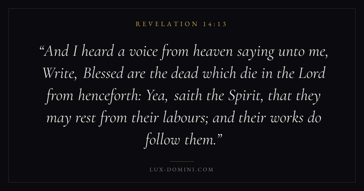 And I heard a voice from heaven saying unto me, Write, Blessed are the dead which die in the Lord from henceforth: Yea, saith the Spirit, that they may rest from their labours; and their works do follow them.