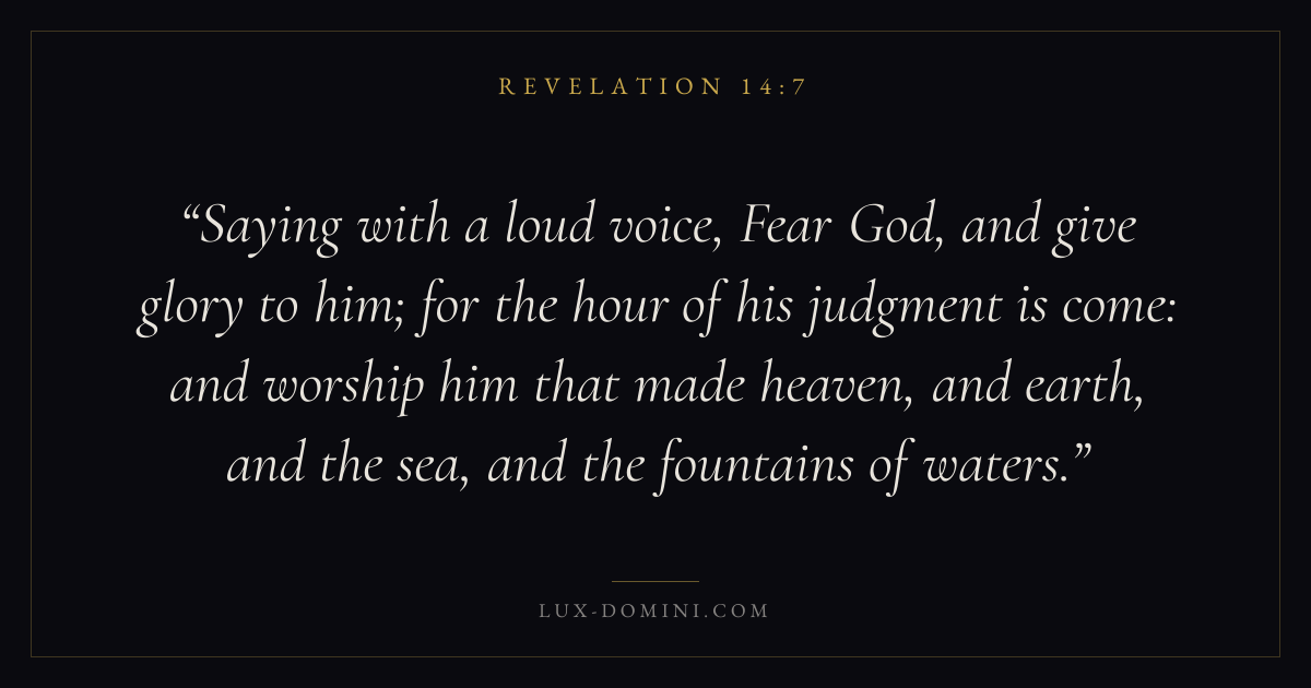 Saying with a loud voice, Fear God, and give glory to him; for the hour of his judgment is come: and worship him that made heaven, and earth, and the sea, and the fountains of waters.