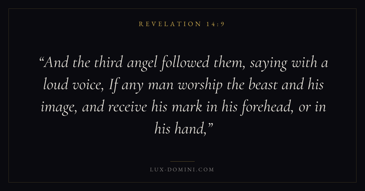 And the third angel followed them, saying with a loud voice, If any man worship the beast and his image, and receive his mark in his forehead, or in his hand,