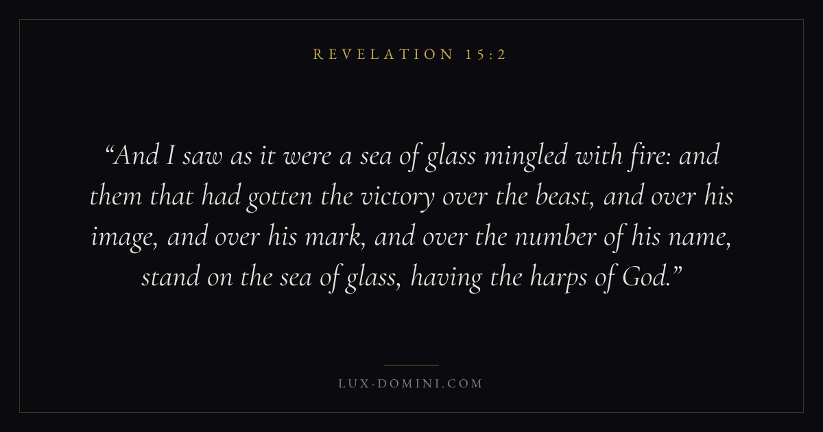 And I saw as it were a sea of glass mingled with fire: and them that had gotten the victory over the beast, and over his image, and over his mark, and over the number of his name, stand on the sea of glass, having the harps of God.