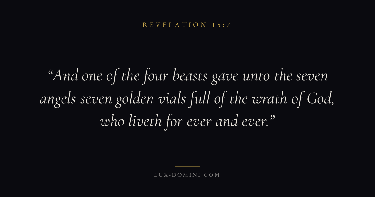 And one of the four beasts gave unto the seven angels seven golden vials full of the wrath of God, who liveth for ever and ever.