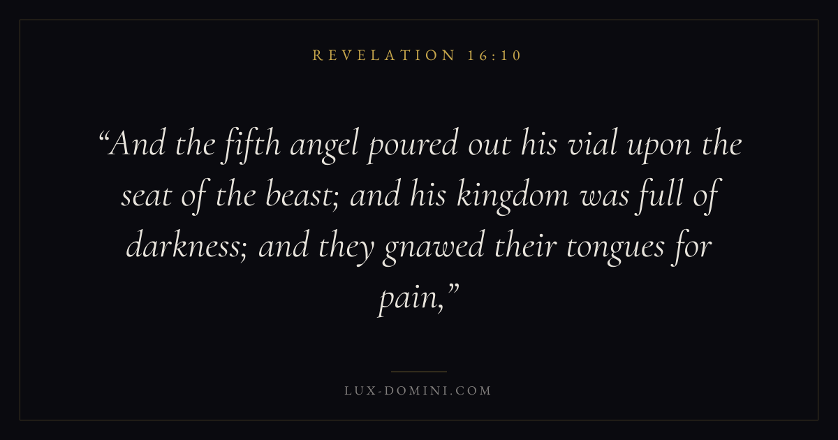 And the fifth angel poured out his vial upon the seat of the beast; and his kingdom was full of darkness; and they gnawed their tongues for pain,