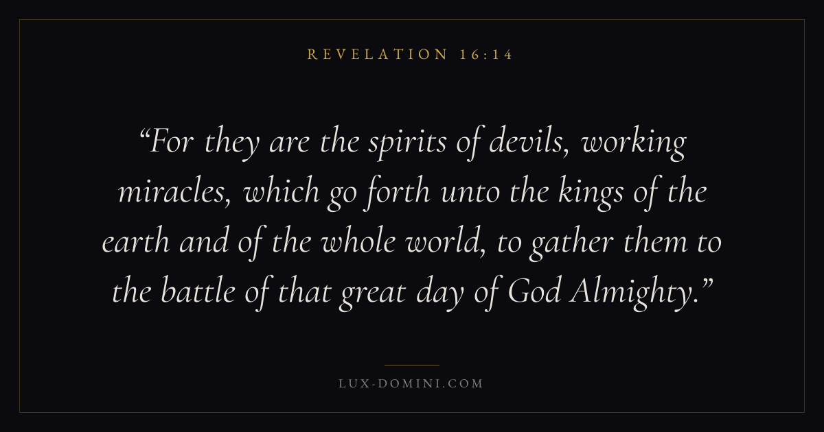 For they are the spirits of devils, working miracles, which go forth unto the kings of the earth and of the whole world, to gather them to the battle of that great day of God Almighty.