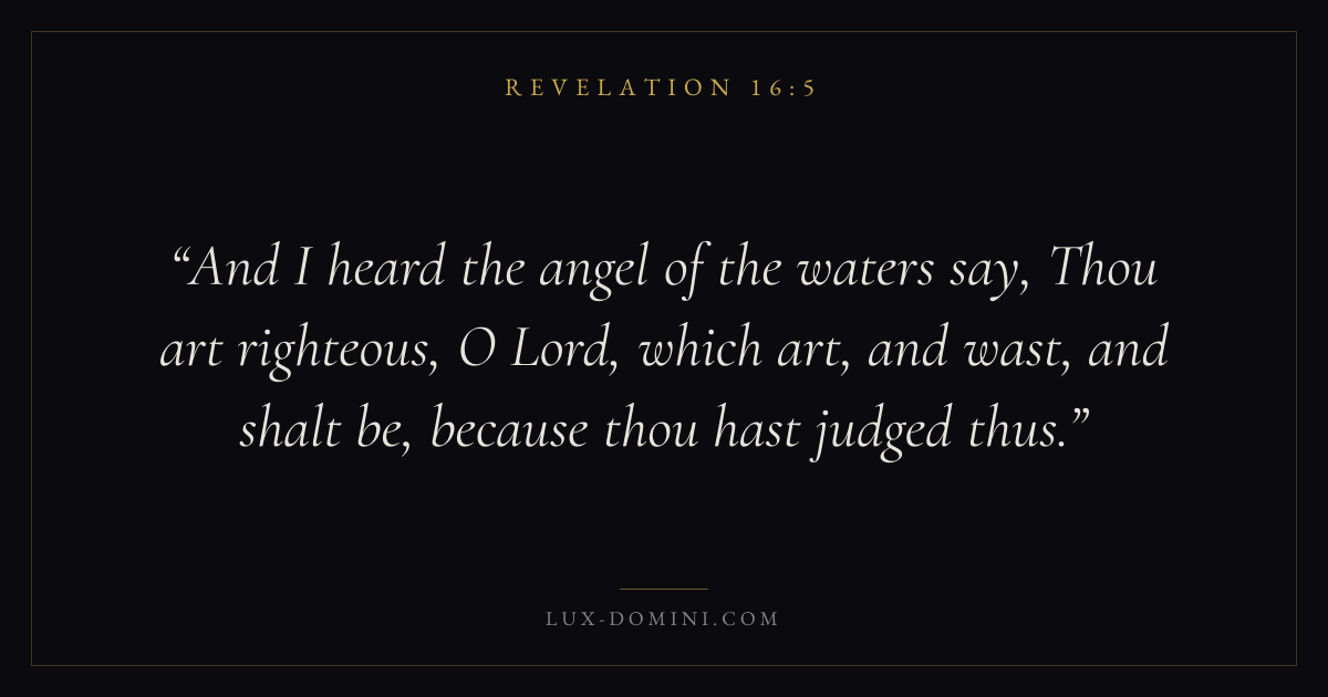 And I heard the angel of the waters say, Thou art righteous, O Lord, which art, and wast, and shalt be, because thou hast judged thus.