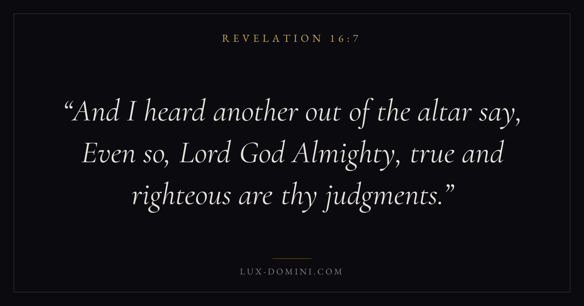 And I heard another out of the altar say, Even so, Lord God Almighty, true and righteous are thy judgments.