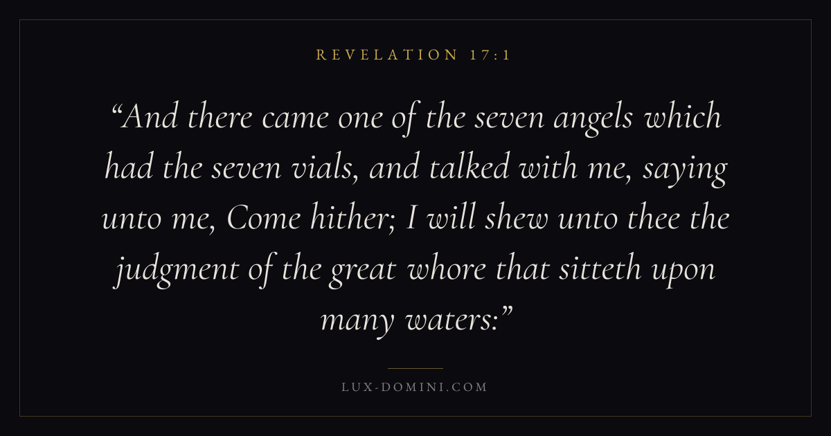 And there came one of the seven angels which had the seven vials, and talked with me, saying unto me, Come hither; I will shew unto thee the judgment of the great whore that sitteth upon many waters: