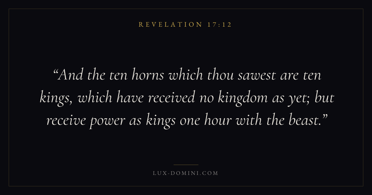 And the ten horns which thou sawest are ten kings, which have received no kingdom as yet; but receive power as kings one hour with the beast.