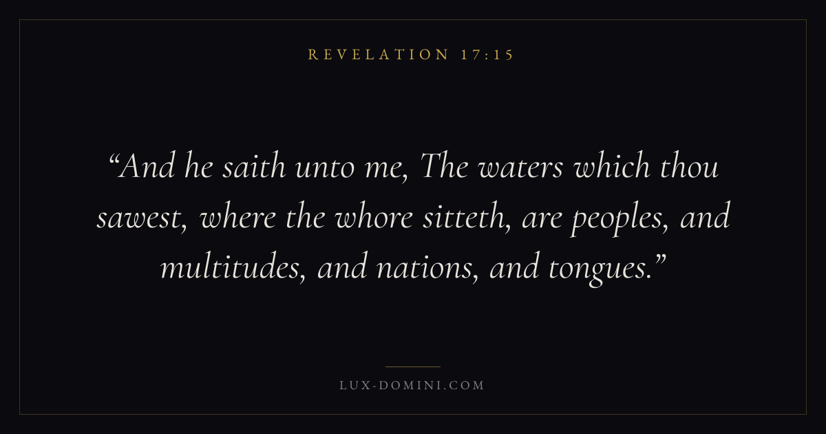 And he saith unto me, The waters which thou sawest, where the whore sitteth, are peoples, and multitudes, and nations, and tongues.