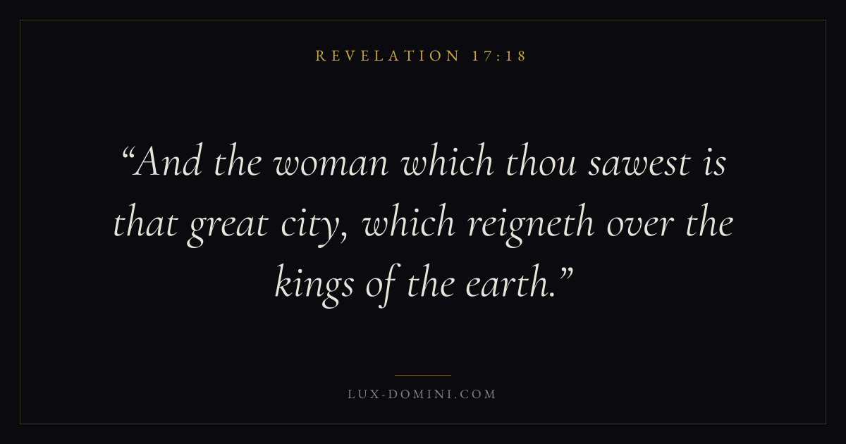 And the woman which thou sawest is that great city, which reigneth over the kings of the earth.