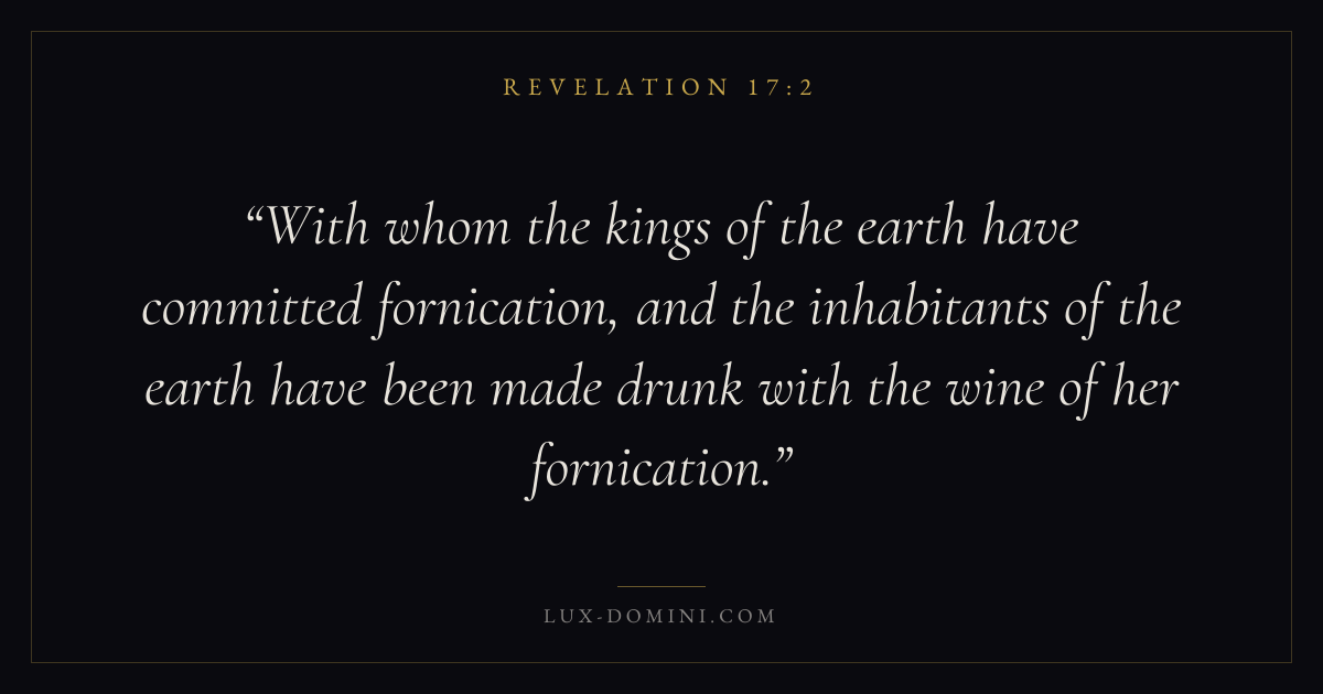 With whom the kings of the earth have committed fornication, and the inhabitants of the earth have been made drunk with the wine of her fornication.