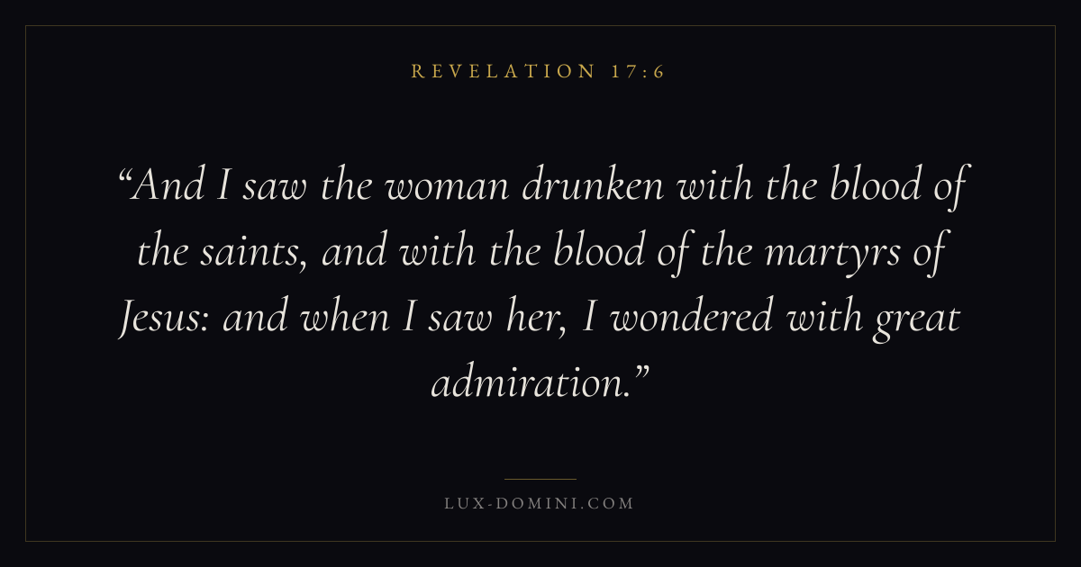 And I saw the woman drunken with the blood of the saints, and with the blood of the martyrs of Jesus: and when I saw her, I wondered with great admiration.